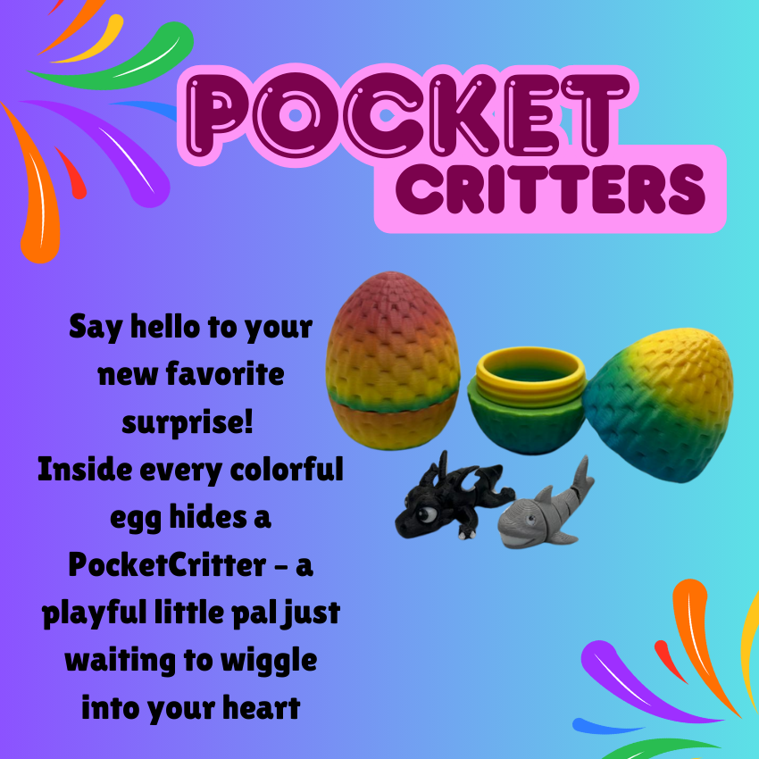 Open the fun! Each 3D-printed surprise egg hides one adorable Pocket Critter inside – but you won’t know which one until you open it! Collect them all and let the excitement of the unknown bring a smile every time. These little companions are perfect for play, collecting, or gifting.