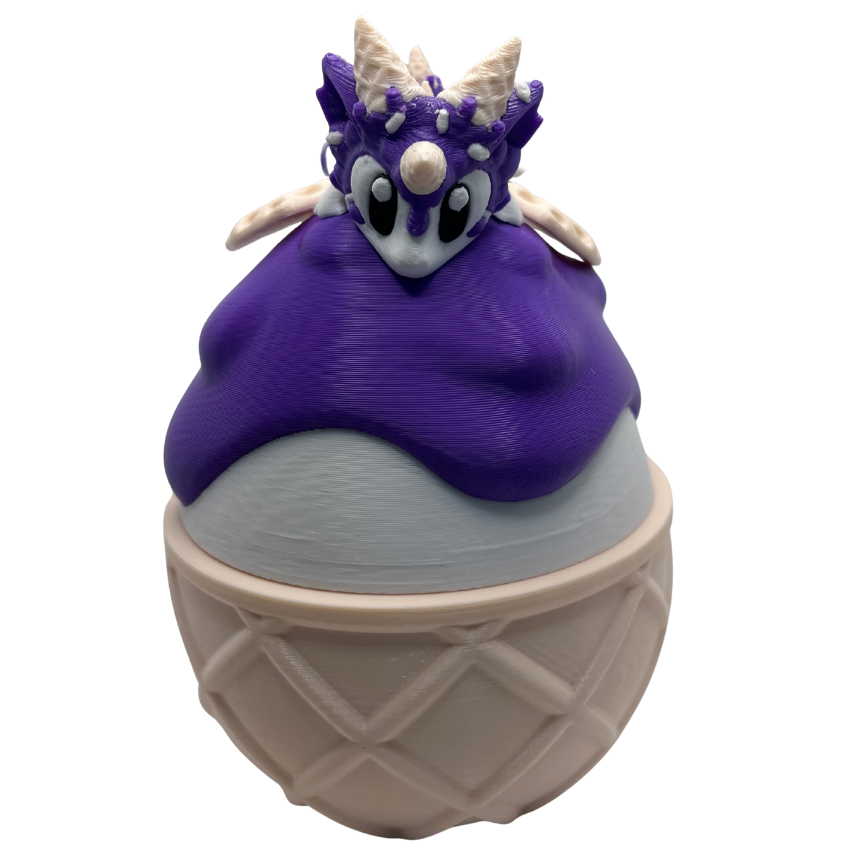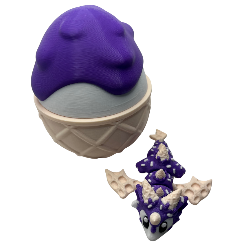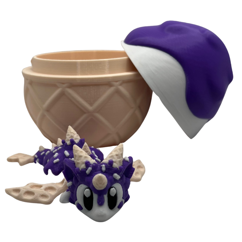 Sweet, magical fun in one playful package! This 3D-printed dragon comes with its very own egg, designed with a twist-top lid so your little dragon can be tucked safely inside. Styled in a whimsical Sugar Rush theme, the dragon’s look mimics a crunchy sugar cone topped with a scoop of ice cream and drizzled with sauce – a treat for the eyes and the imagination!